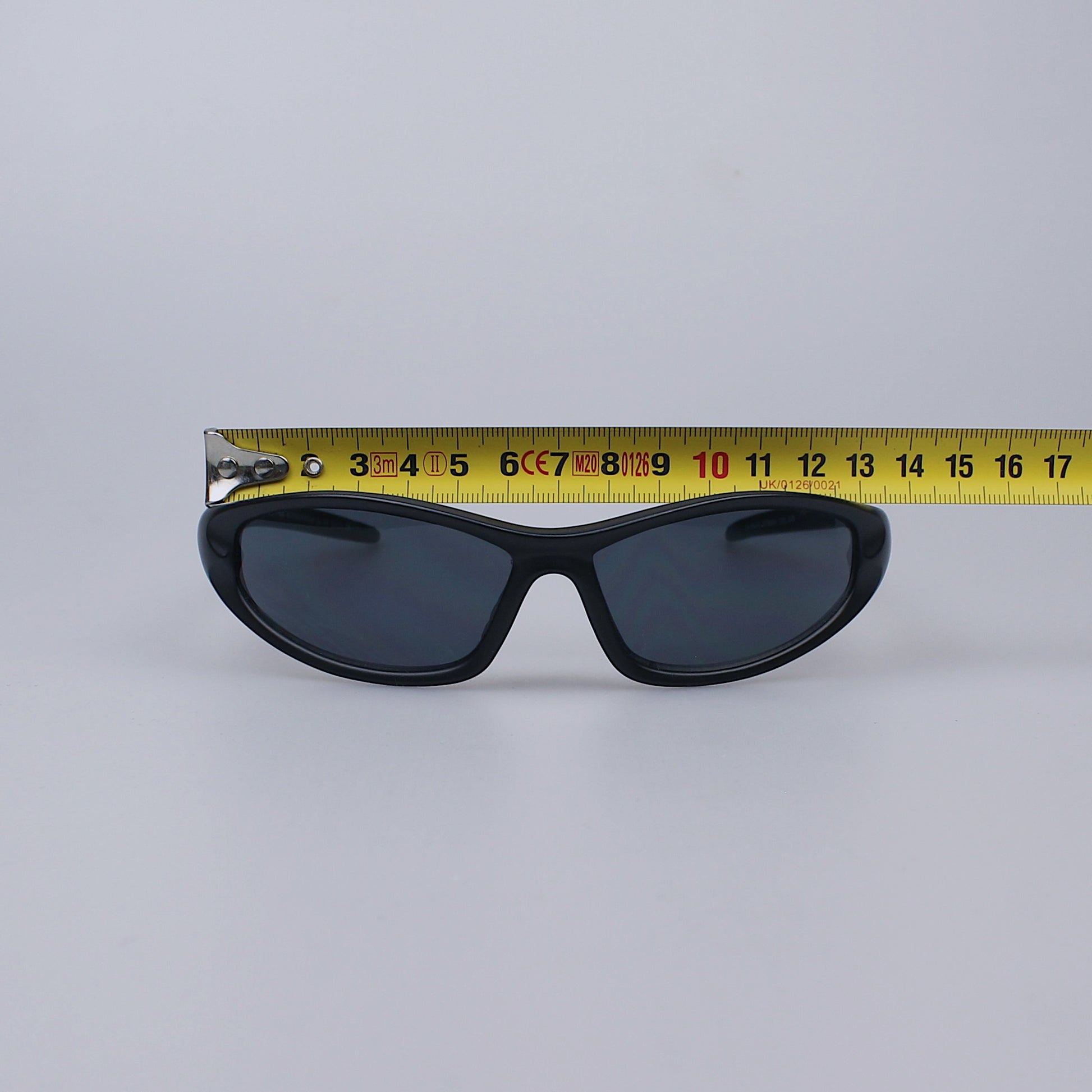 Sunglasses with polycarbonate frames and resin lenses with UV400 protection.