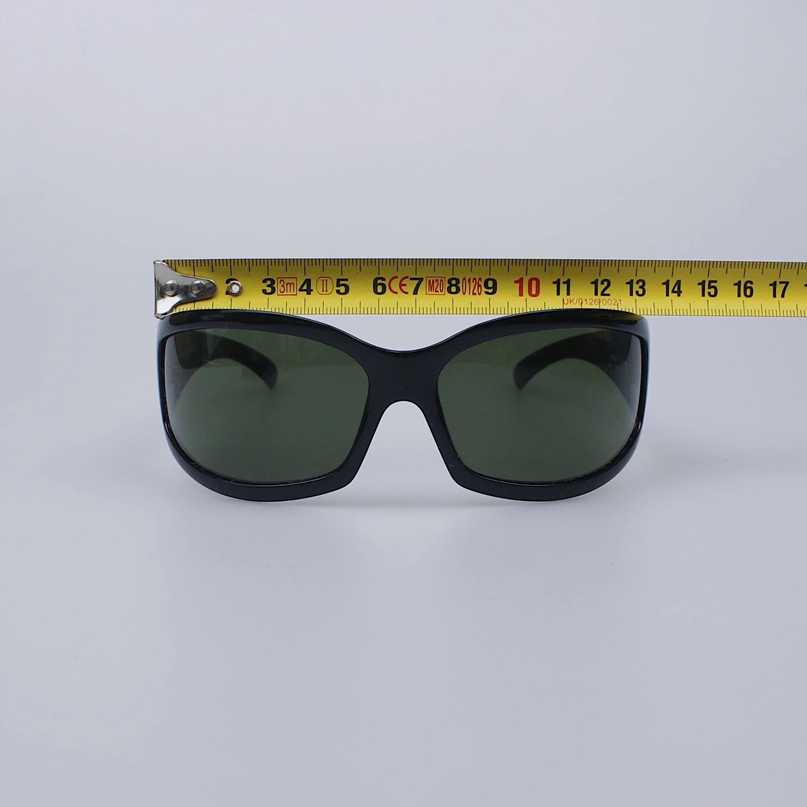 Sunglasses with polycarbonate frames and resin lenses with UV400 protection.